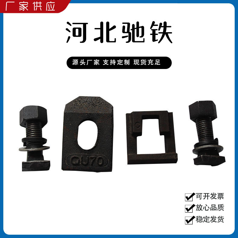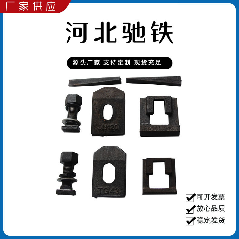 主要產品:鐵路配件、行車配件、工礦配件、魚尾板、道釘、壓軌器、軌道壓板、軌距拉桿、護軌扣板、T型螺栓、魚尾螺栓、彈條、軌距擋板